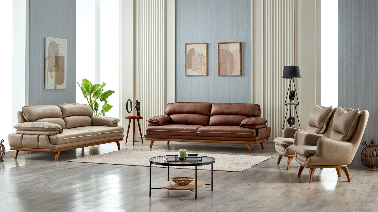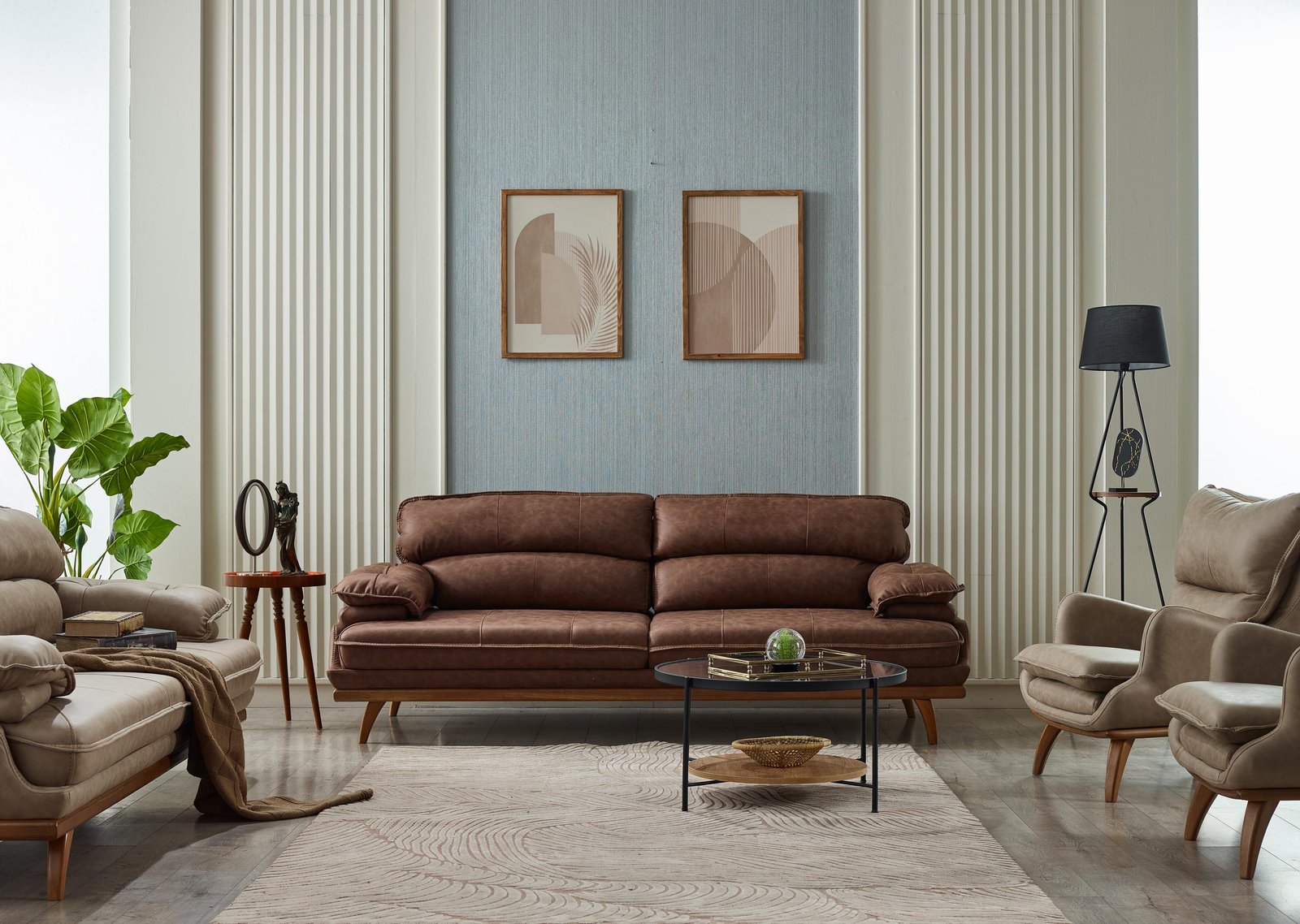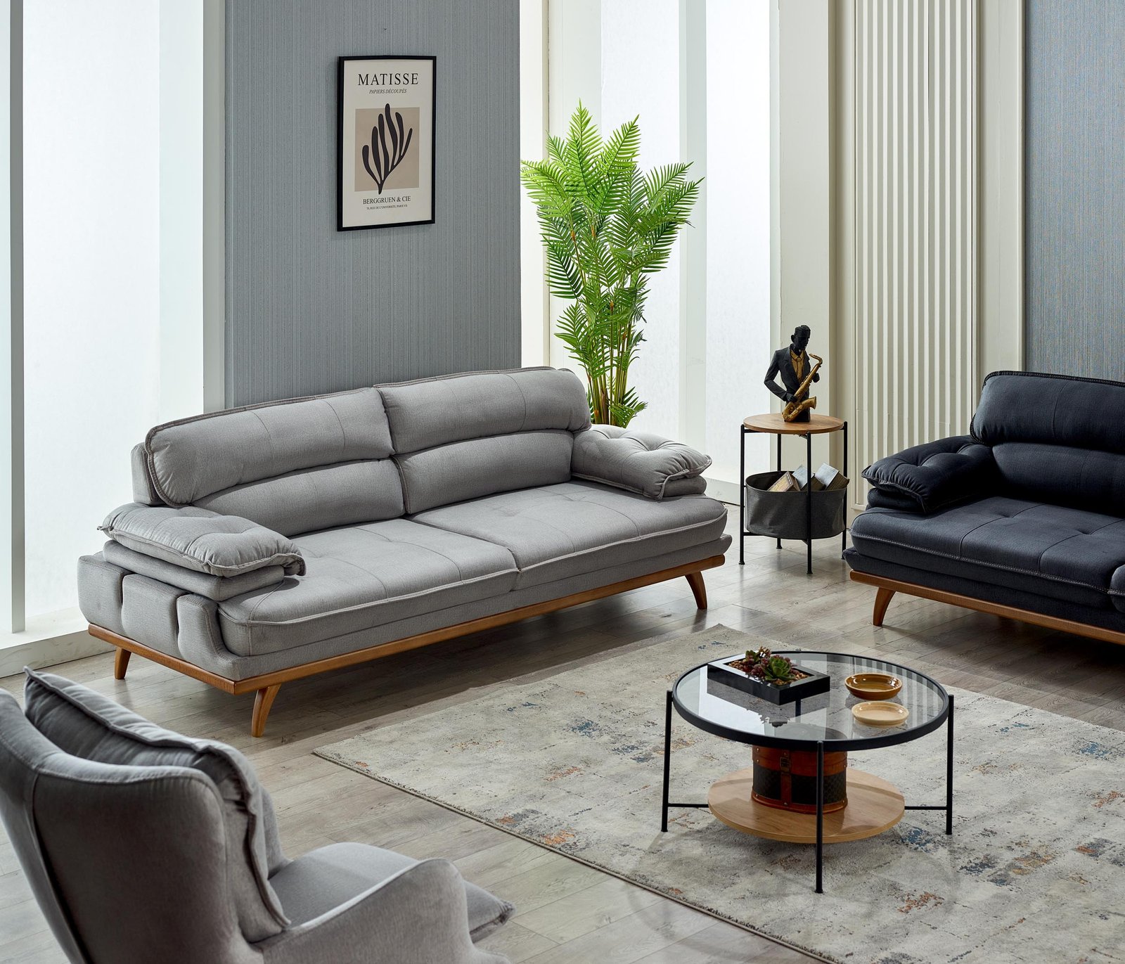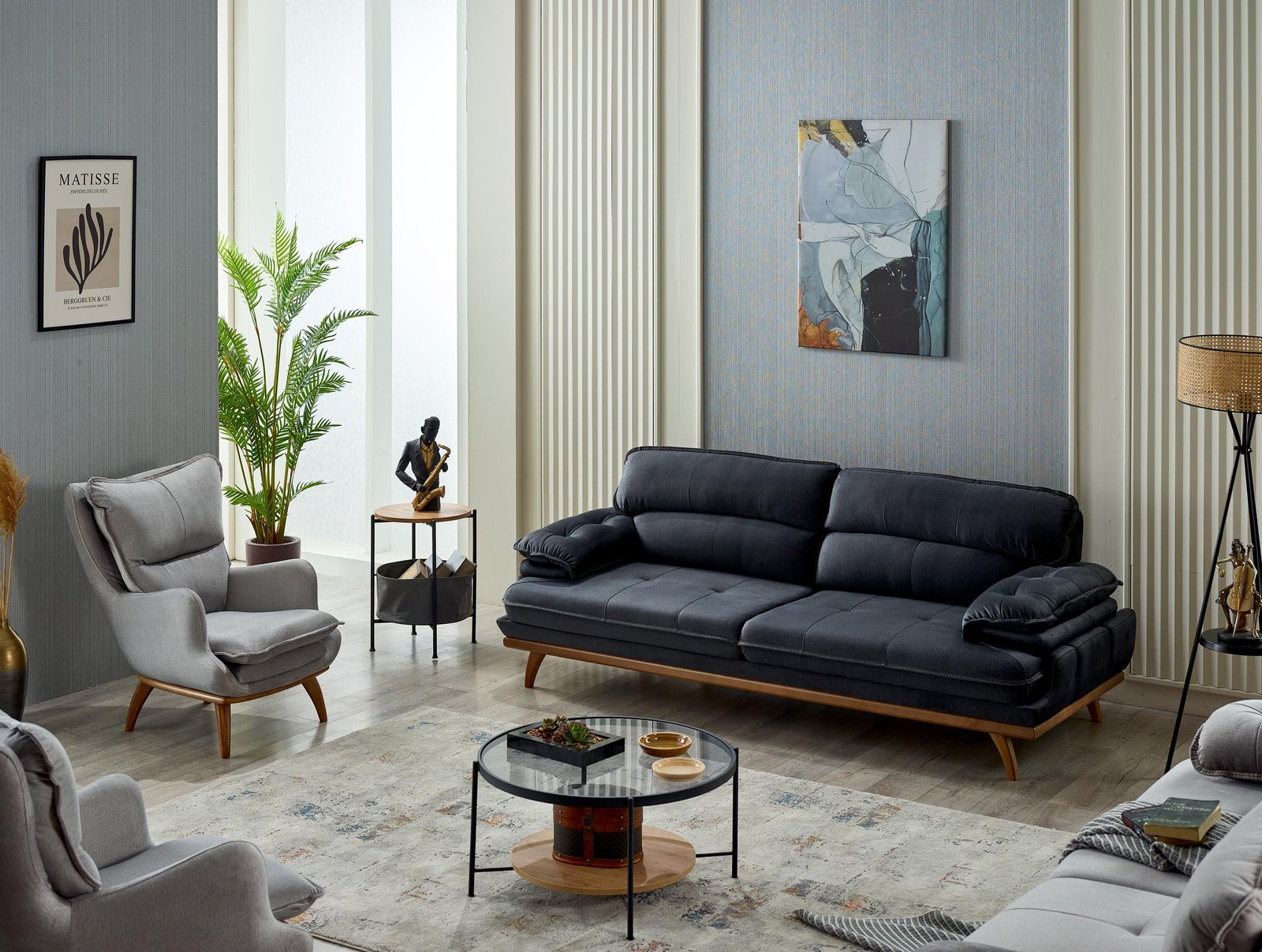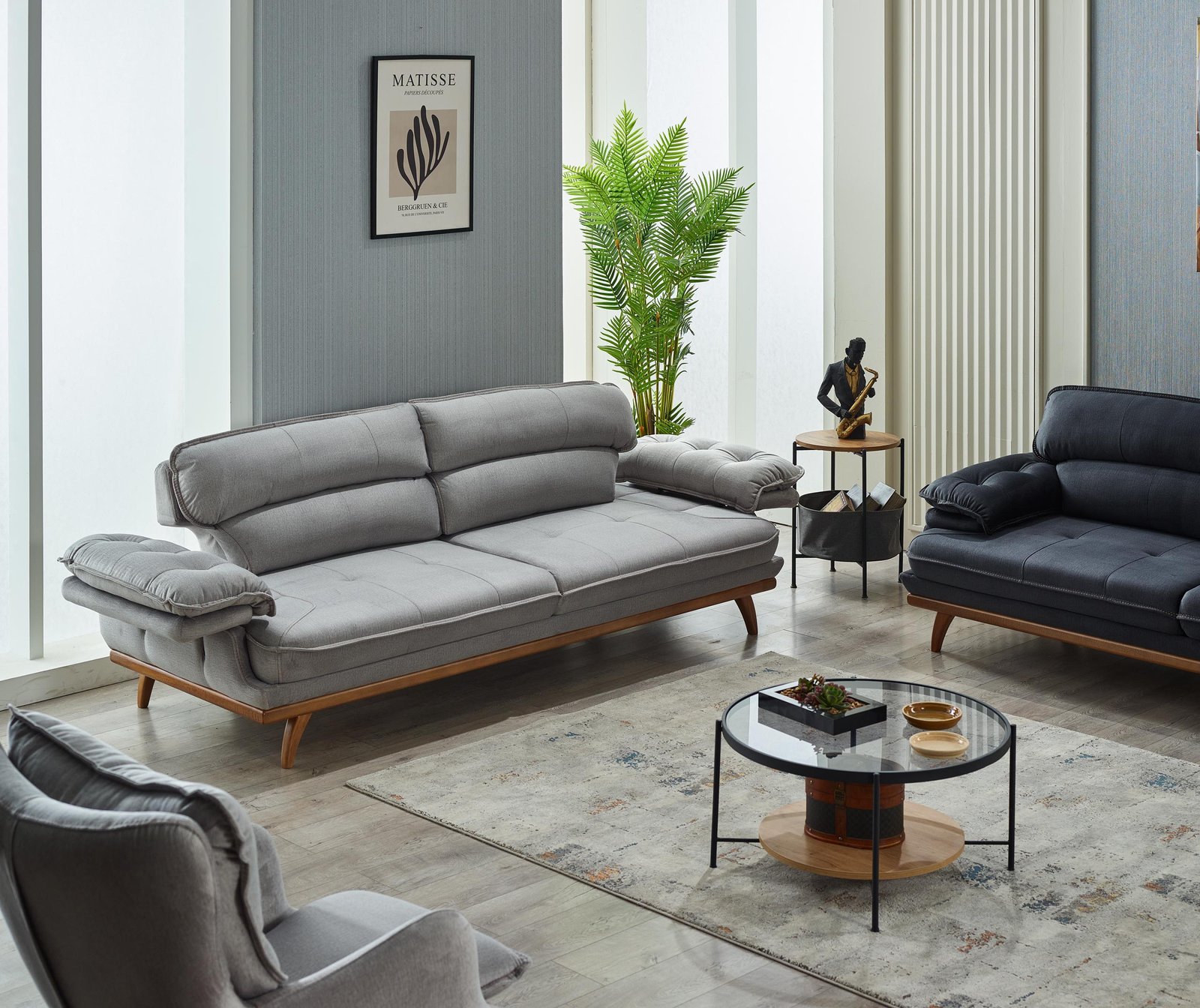Konforlu oturuma sahip olan Puffy Koltuk Takımı, üçlü koltukta bulunan ters makas yatak mekanizmasıyla fonksiyonel kullanım imkânı sağlıyor.