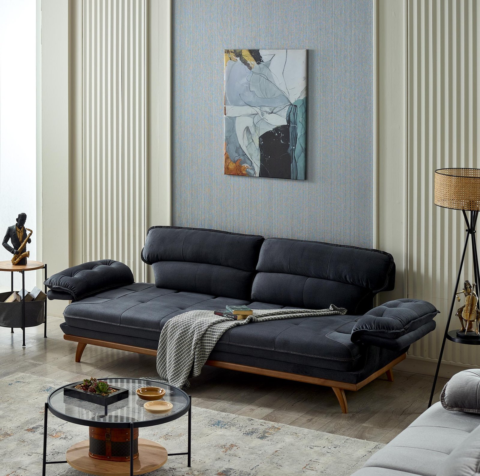 Açılarak yatak olabilen fonksiyonel üçlü koltuk, misafirleriniz için rahat bir uyku deneyimi sunar.