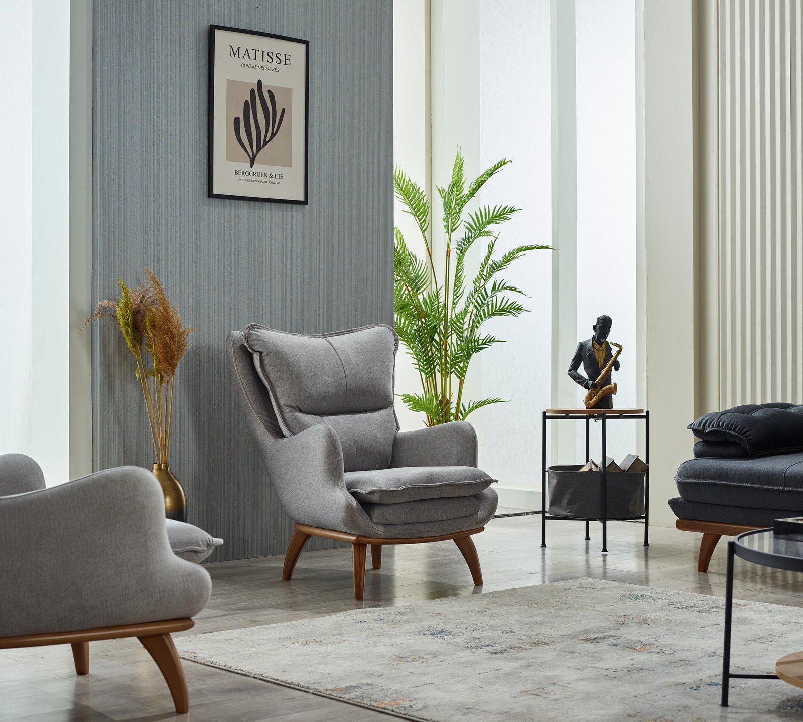 Sakin ve modern kumaş seçenekleriyle öne çıkan Puffy Koltuk Takımı, kol klapalarında bulunan dekoratif dikiş uygulamasıyla tasarımdaki estetik yorumu vurguluyor.