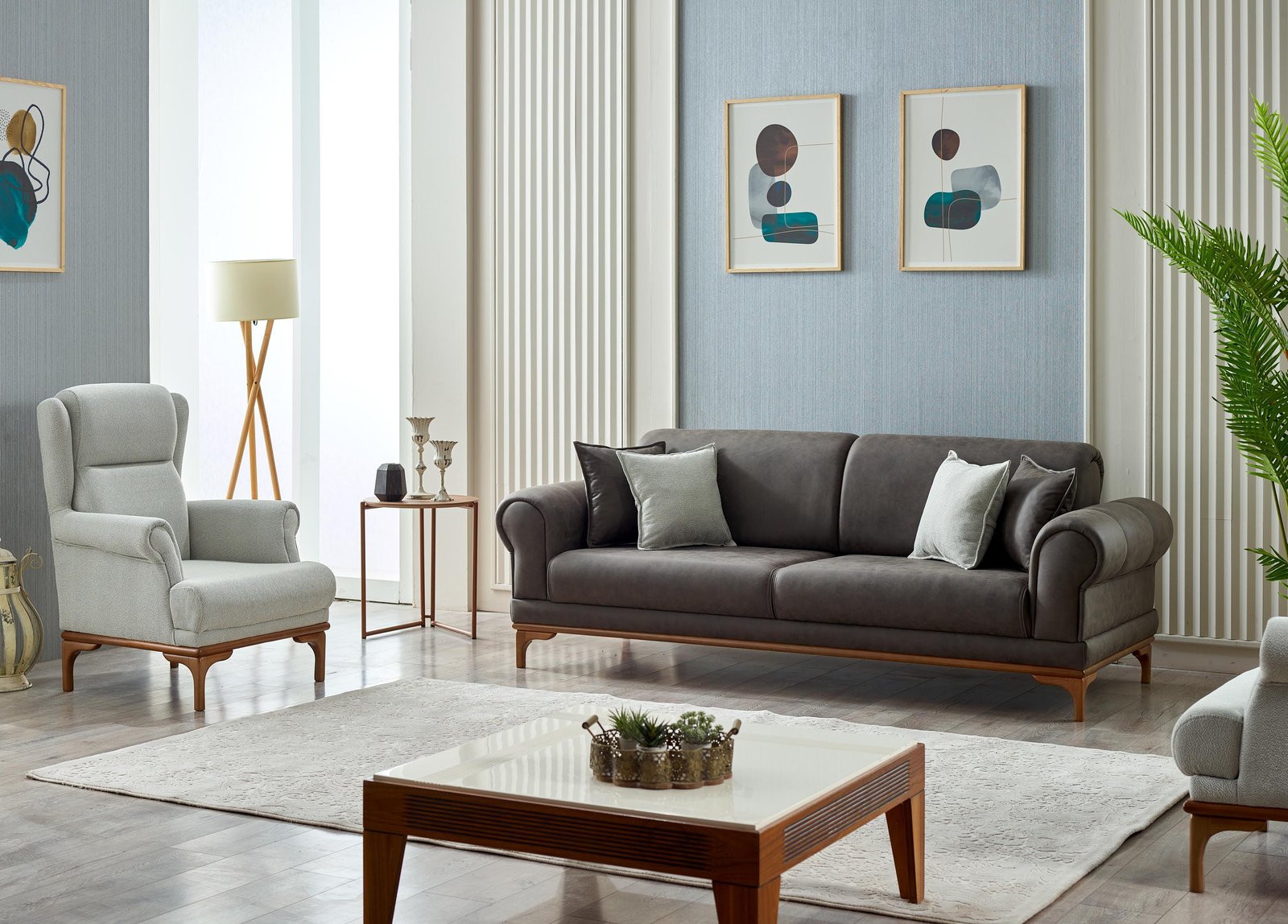 Zarif ahşap detayları ve modern çizgileriyle Roma Koltuk Takımı, evinize İtalyan tasarım estetiğini taşıyor.